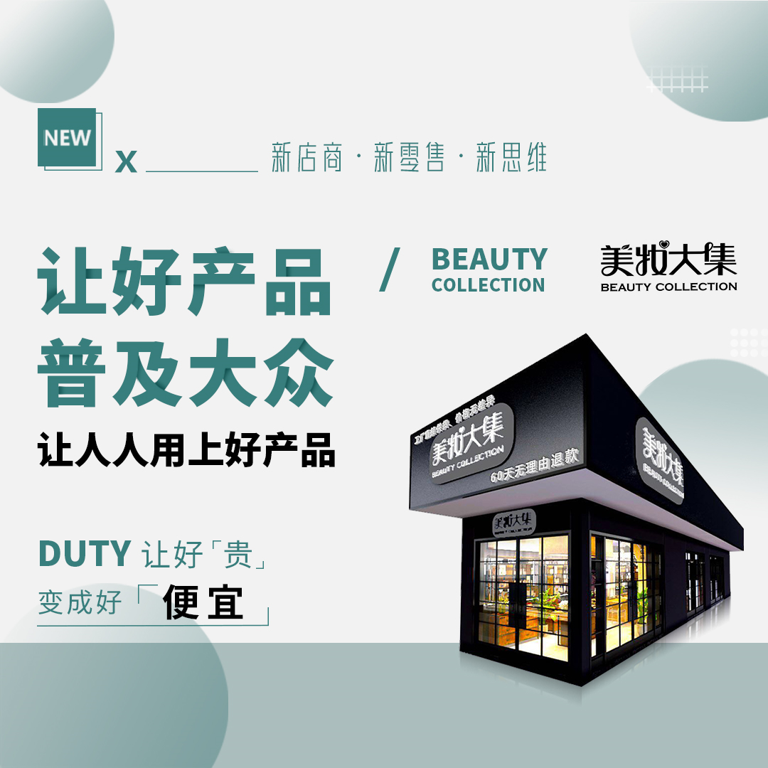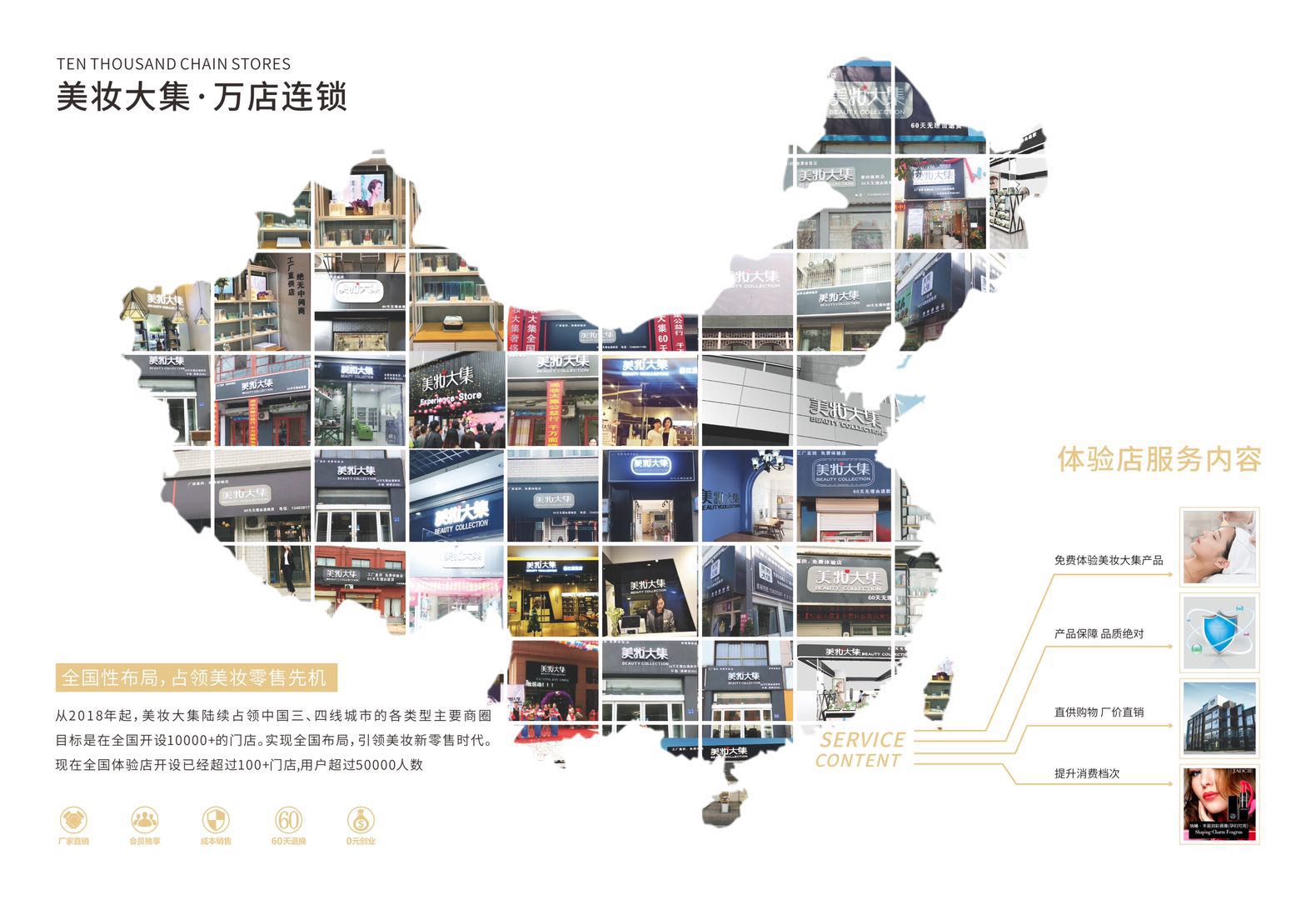 美妆大集短短两年多,遍布全国30+省市,无缝对接新老城区、时尚商圈,选址毗邻大润发各大商超,公司全程予以资金、技术帮扶,并有总部区域总监不定期下市场进行神助攻。得天独厚的运营模式与配套资源,让美妆大集充满商机,充满财富!